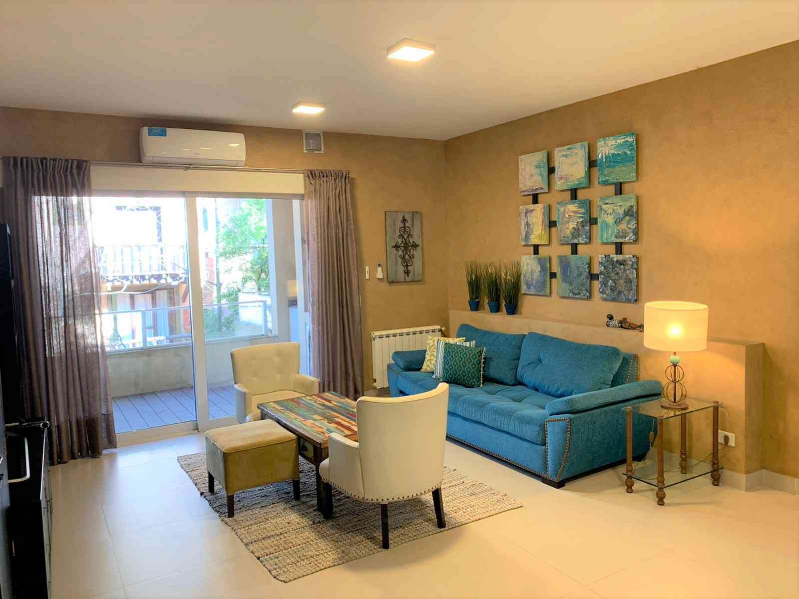 Departamento, pensado para el confort, cuenta con dos dormitorios, living-comedor y cocina integrada, invitándote a vivir momentos únicos al aire libre y disfrutar de la tranquilidad y el encanto del entorno. Servicios Incluidos: * Los valores incluyen, servicio blanqueria (sabanas y toallas) limpieza todos los días (sin lavado de vajilla) * Acceso a piscina climatizada cubierta, piscina exterior * Gimnasio. * Cochera cubierta. * En el departamento encontrara dos sillas para la playa.
